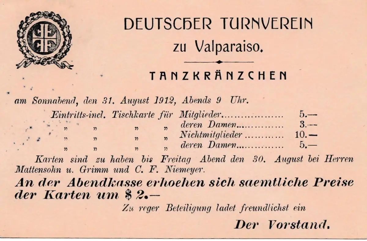 1912: Chili: Association allemande de danse Valparaiso-Maritima - Invitation