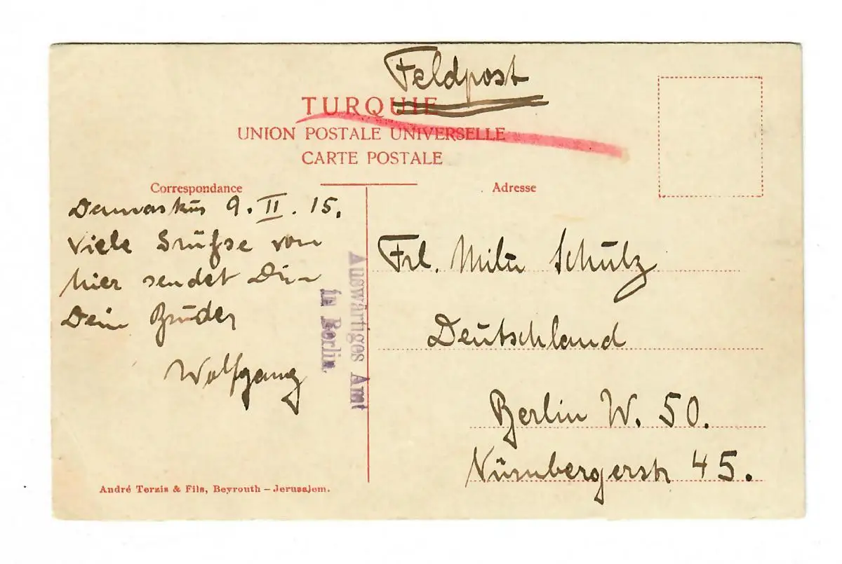 1915: Carte de vue du FP Baalbeck, ministère des Affaires étrangères à Berlin après Berlin