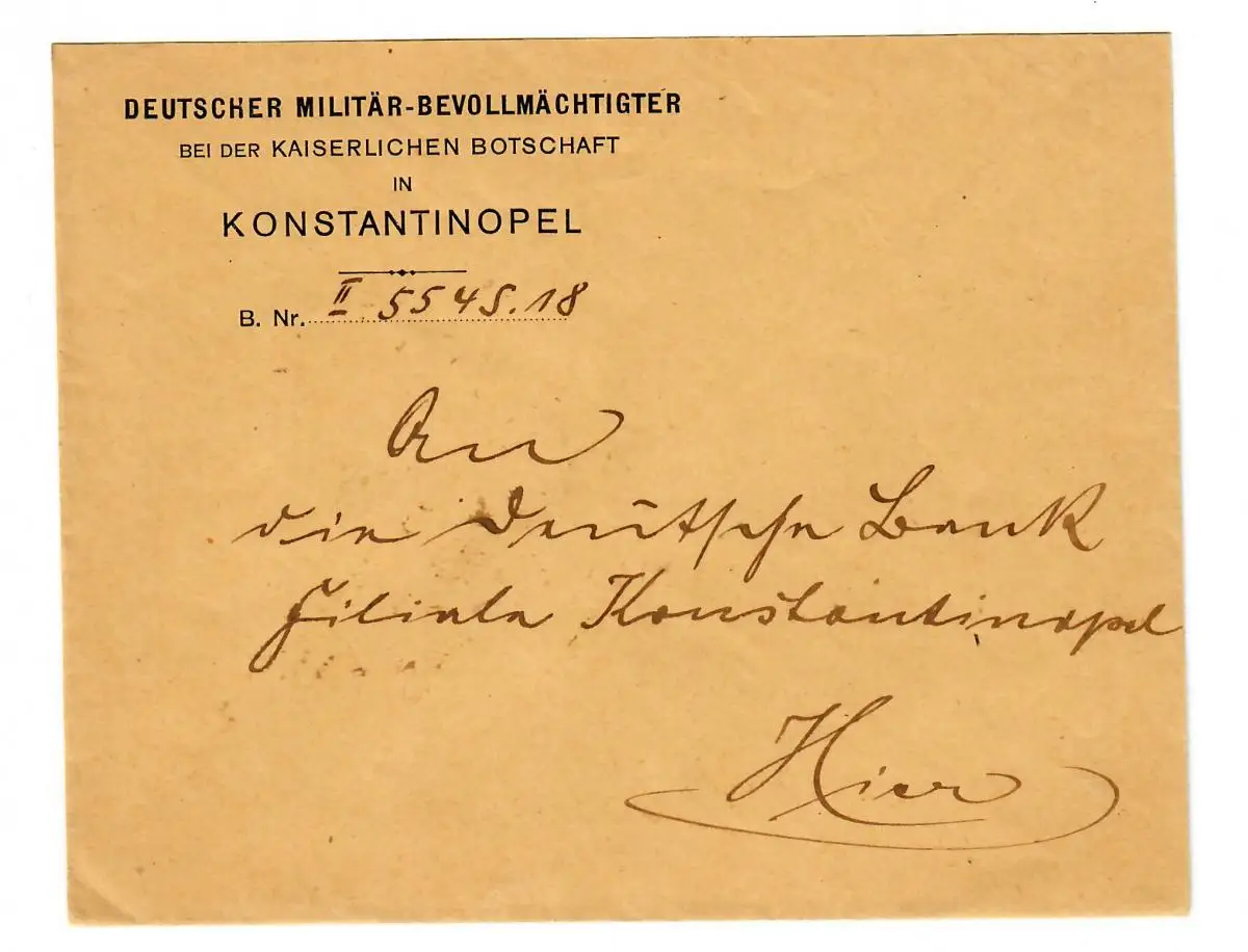 1916 Lettre de service plénipotentiaires militaires à l'ambassade de Constantinople