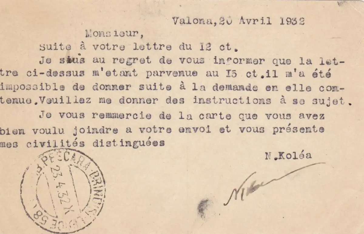 1932: Carte postale Italienne Vlone/Valona to Roma