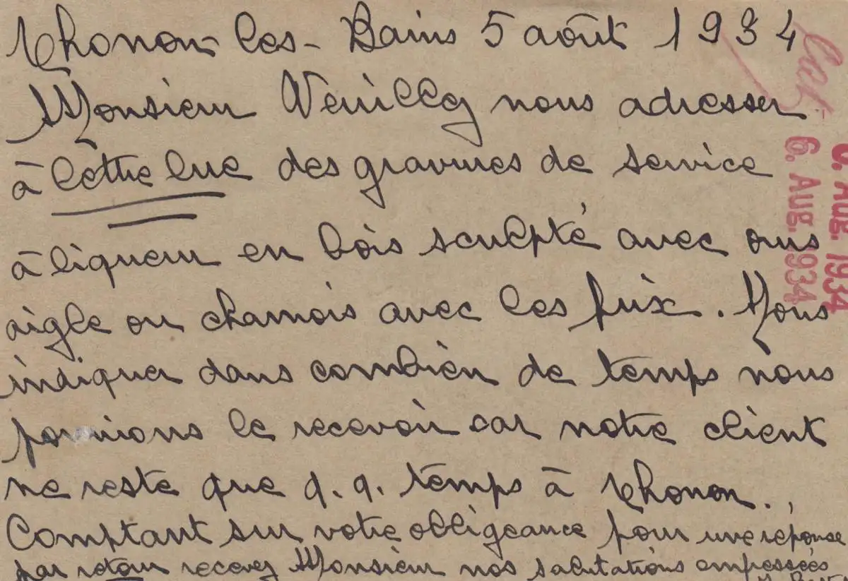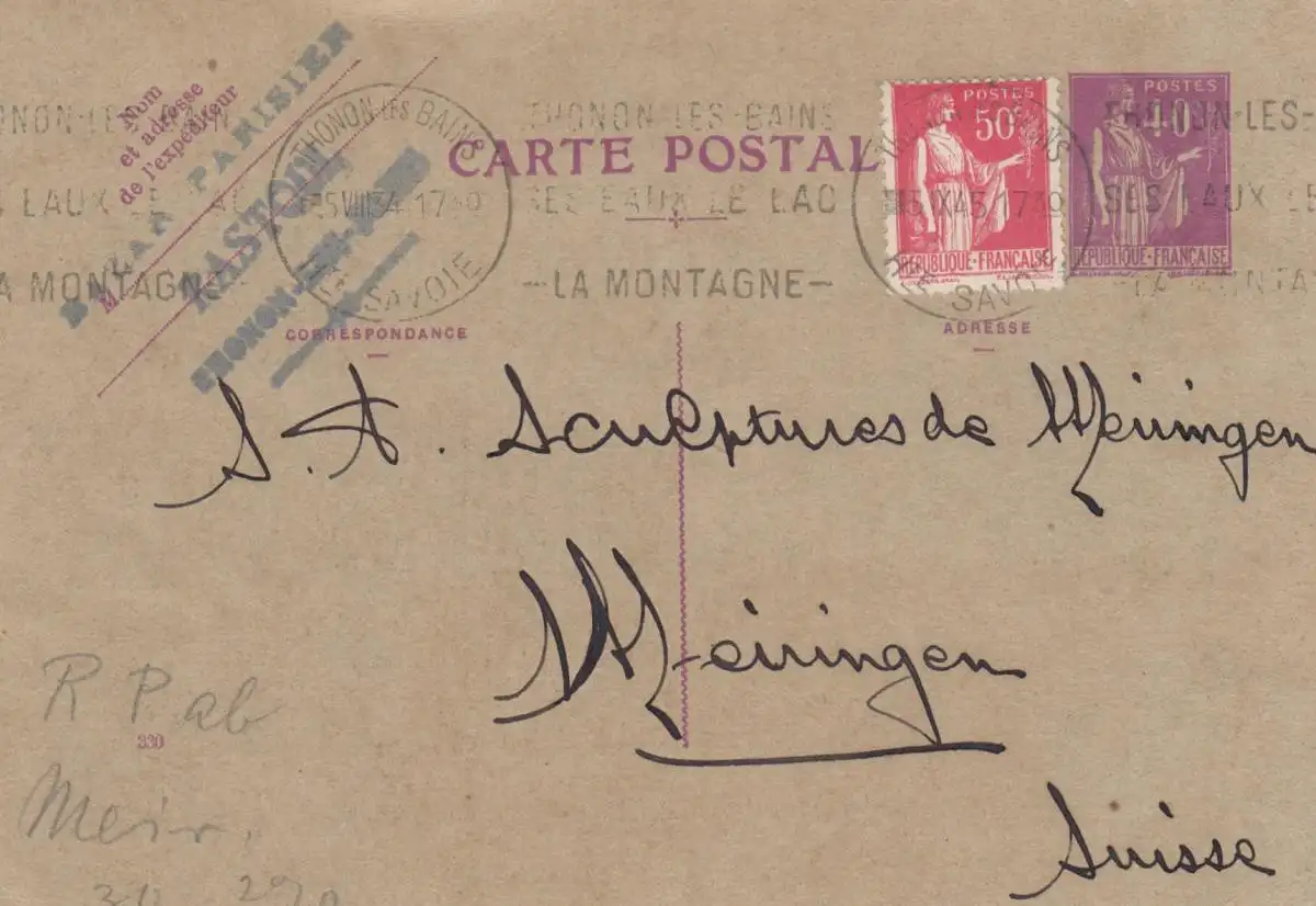 1934 post card Thonon les Bains to Meiningen