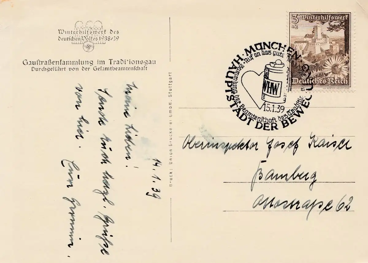 1938/39: WHW Carte de vue: Victime Non! Merci devrait être: Munich