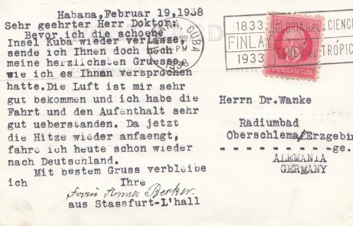 1938: post card Cabana Fortress, Moro Castle to Oberslema