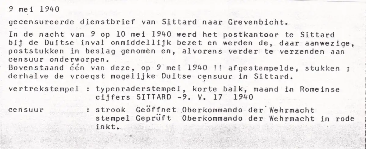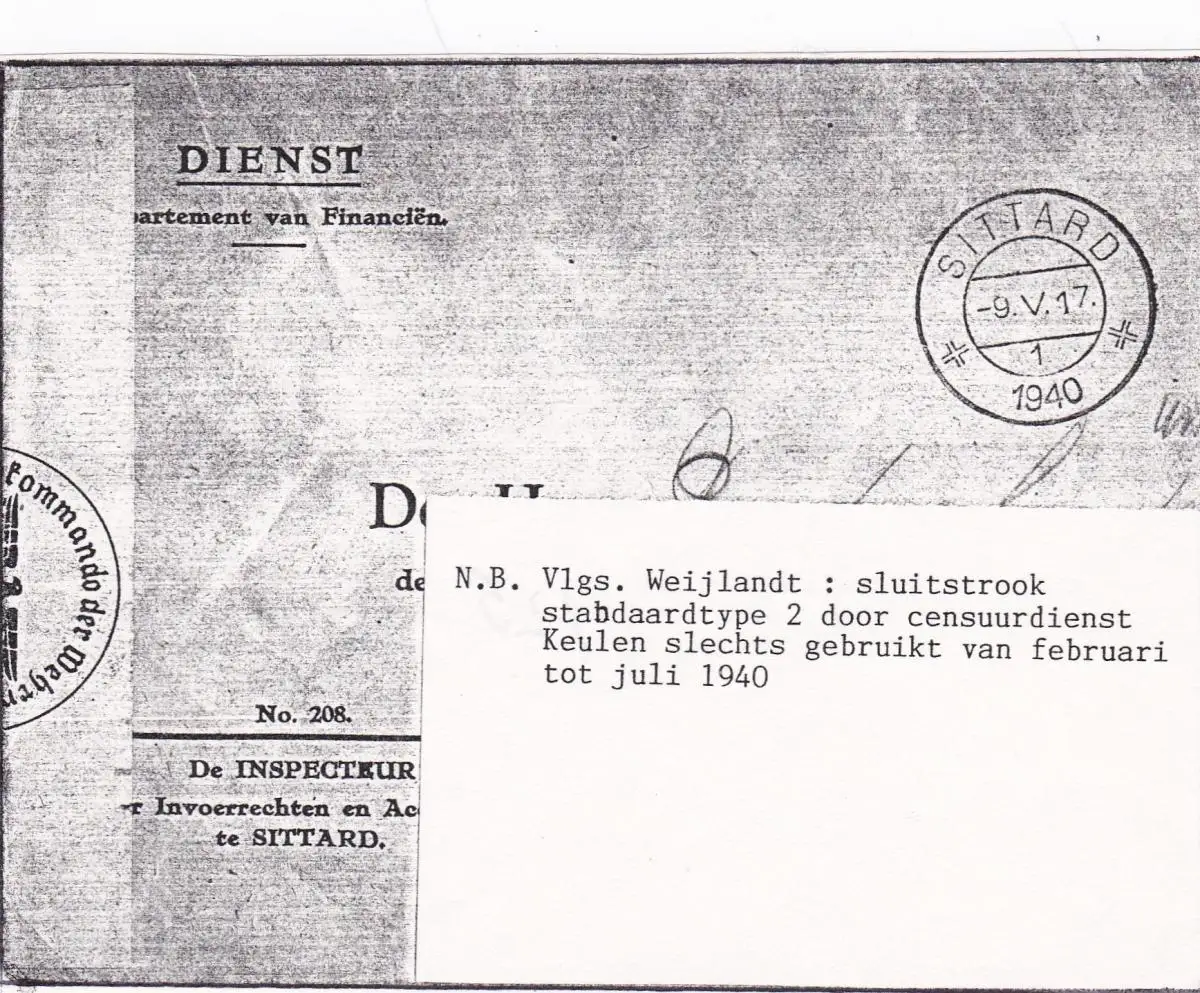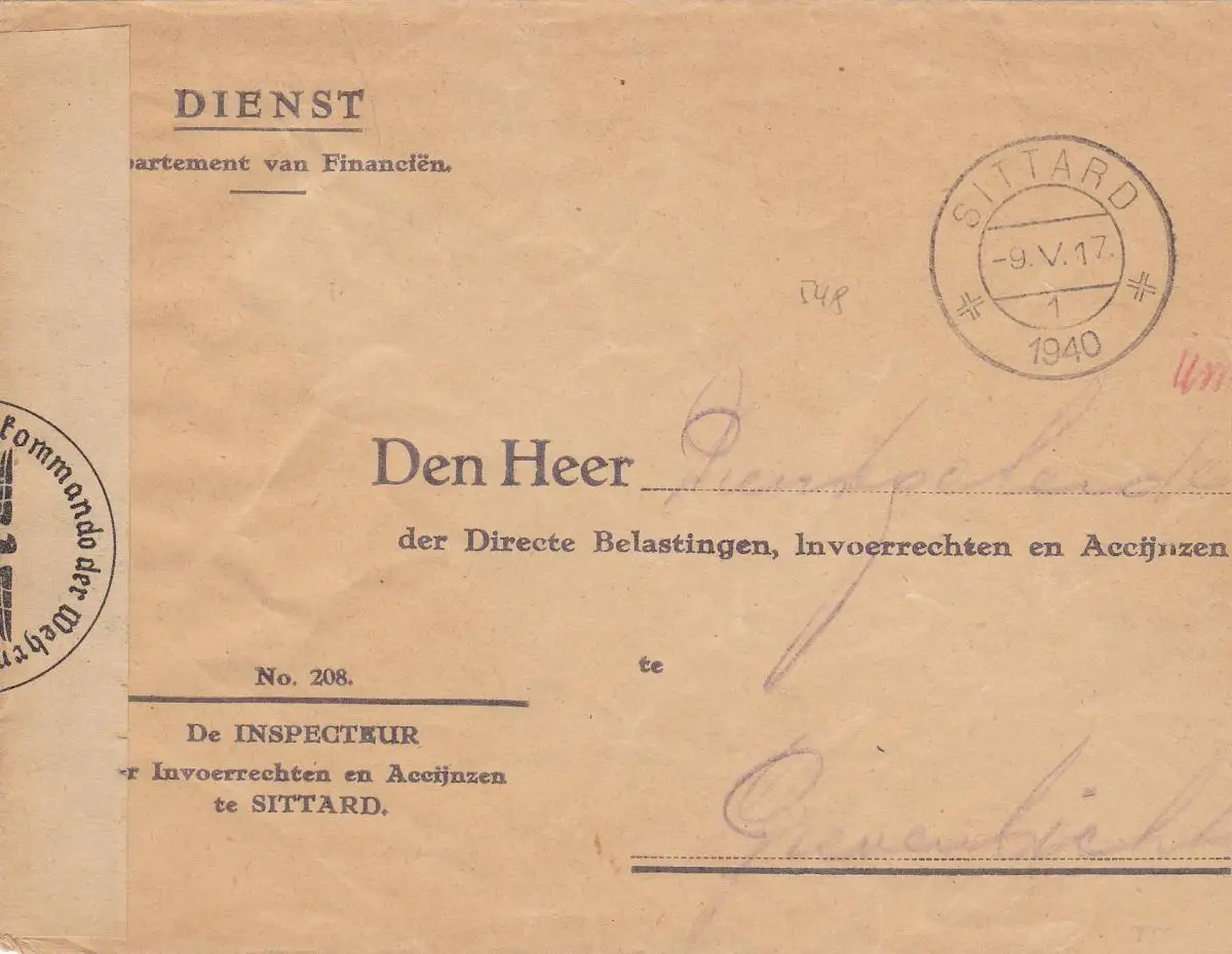 1940: Dienst Department van Financien Sittard /OKW Censuration