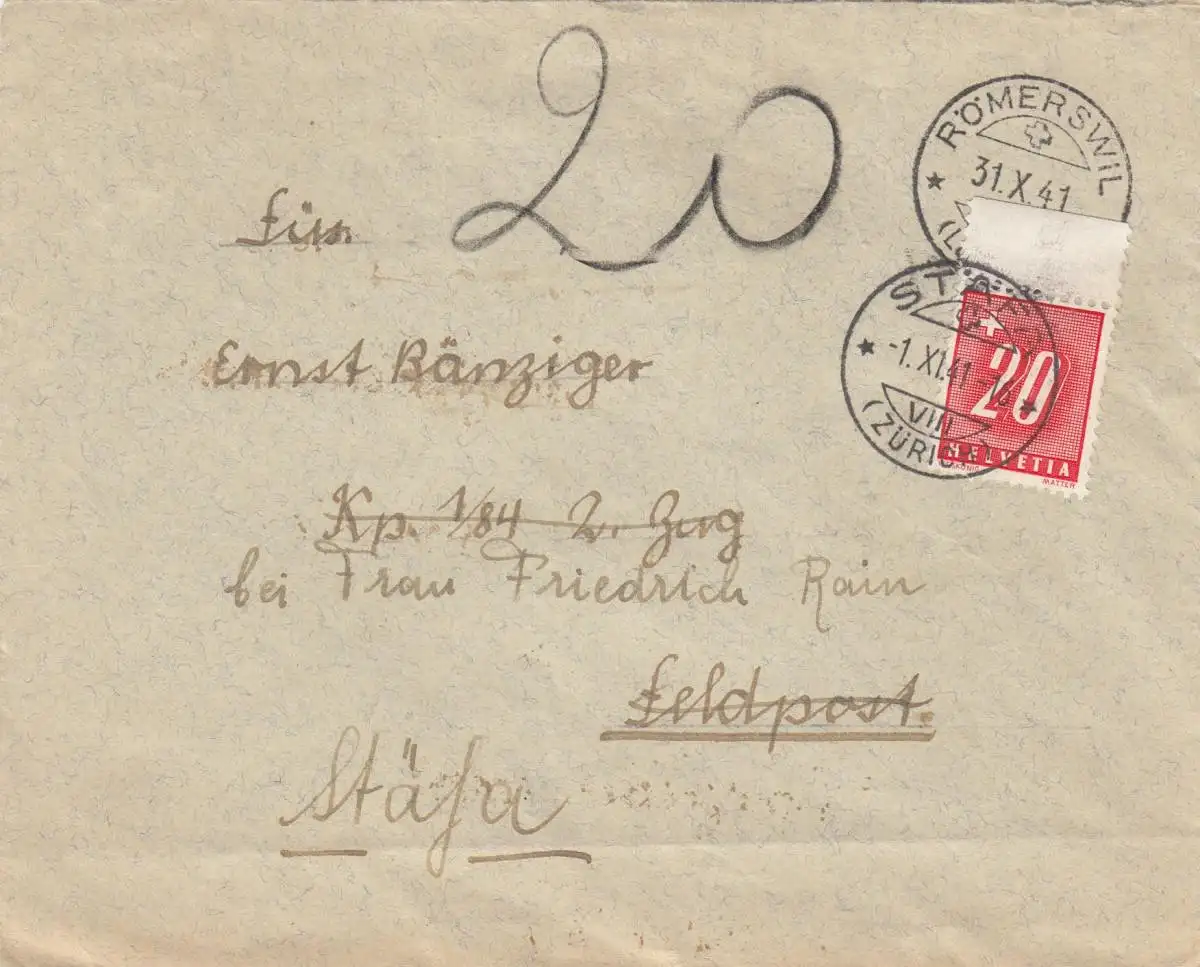 1941: Romainswil comme poste de campagne - Après-porto Stäfa