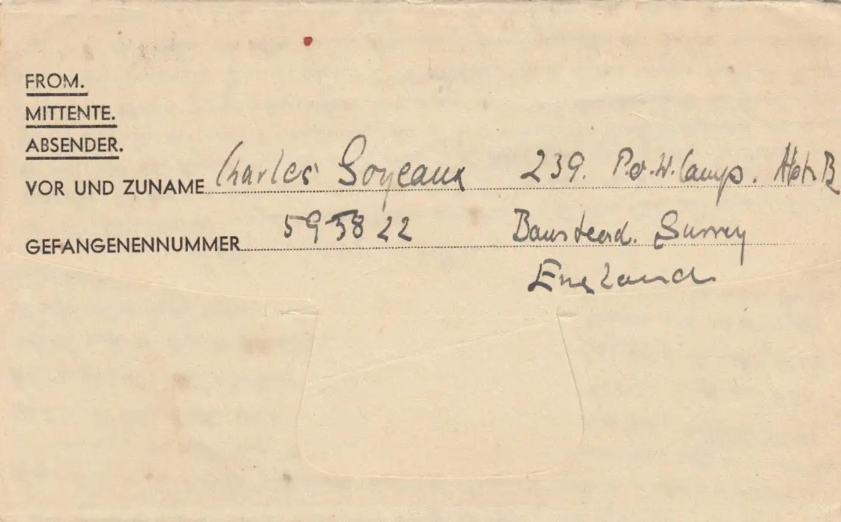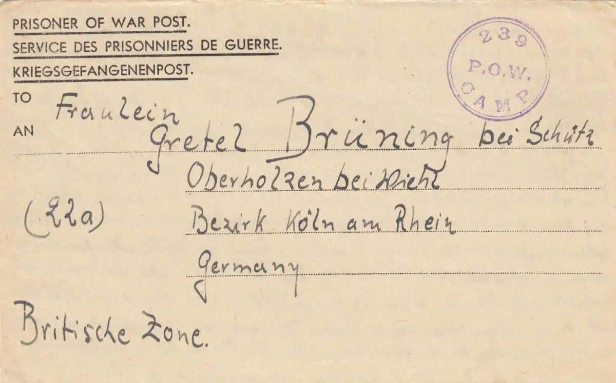 1947 PoW - Kgf Post, GB Bausteerd Surrey to Oberholzen près de Wiehl