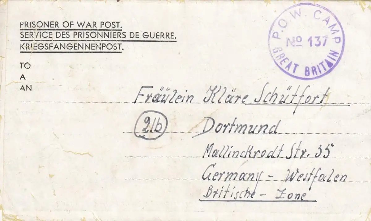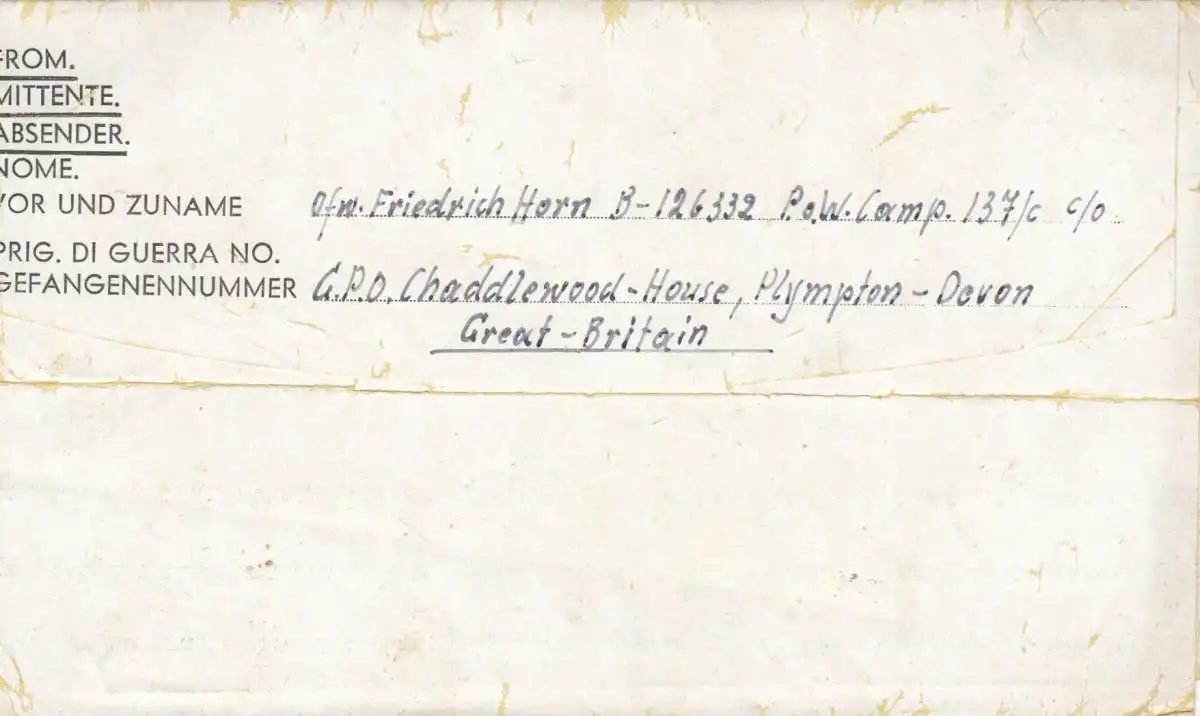 1947 PoW - Kgf Post, GB Plympton-Devon, Chaddlewood-house to Dortmund