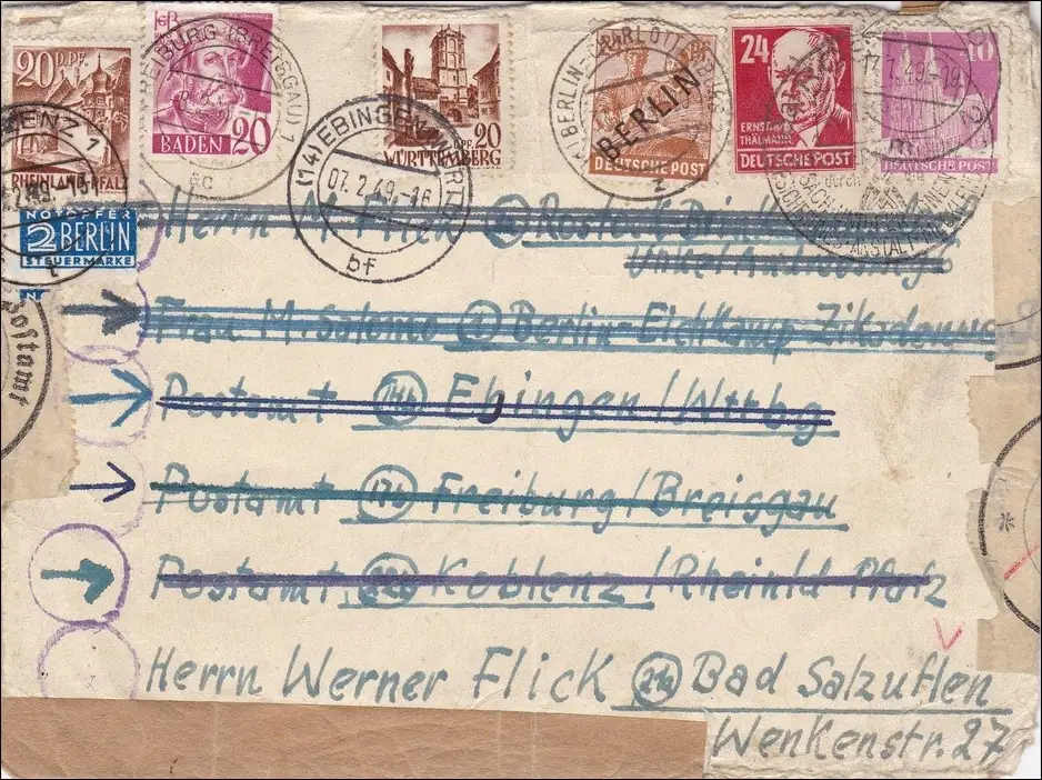 1949 de nombreuses transmissions: B,Fribourg, Ebingen, Coblence, Bad Salzuflen, Rostock