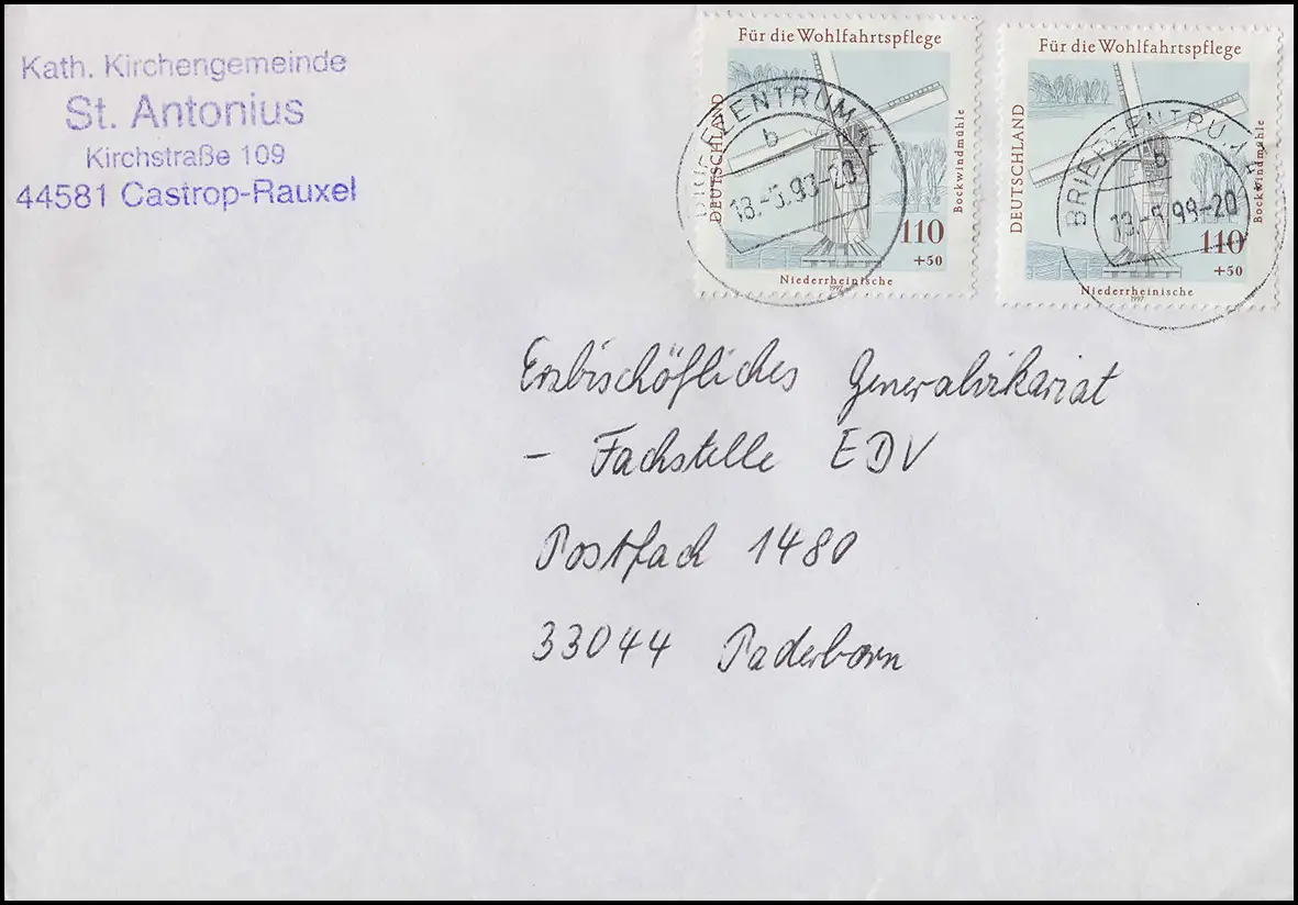1950 Wofa Niederrheinische Bockwindmühle Lettre d'approvisionnement MeF Lettre BZ 44 - 18.5.98