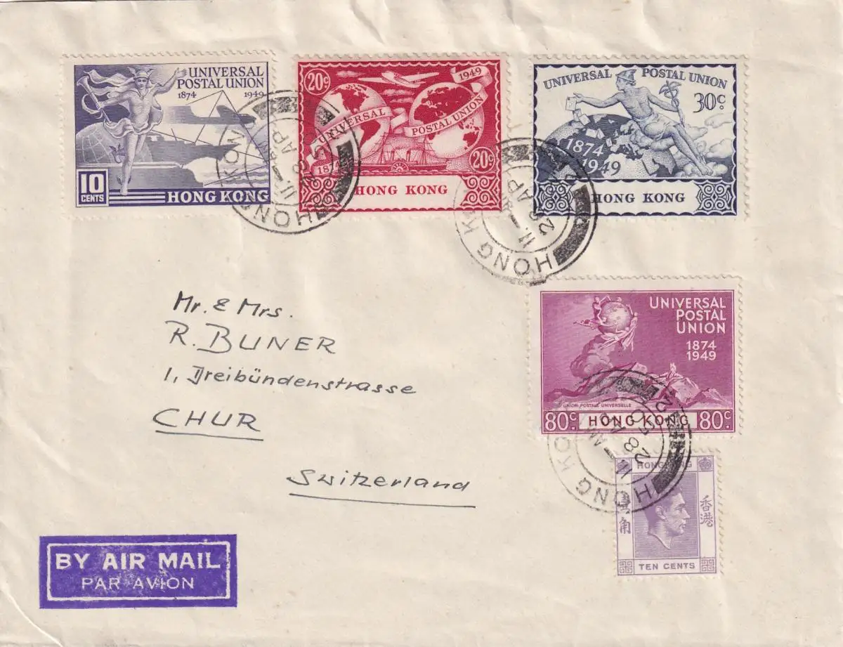 1950, air mail Hong Kong to Chur/Switzerland