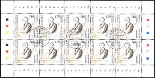 1962 Heinrich Heine 2e édition - Bogen de 10 sans runes, tamponné