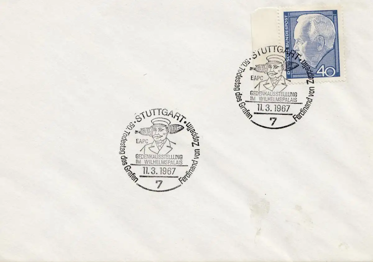 1967: timbre spécial Stuttgart: 50e anniversaire de la mort de Zeppelin