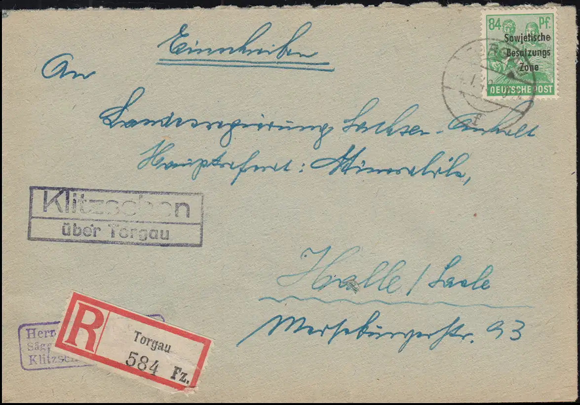 Tampon d'arrivée HALLE (SAALE) 6.1.49 Numéro de catalogue: 197 Examen: original Référence produit: 00000000043166