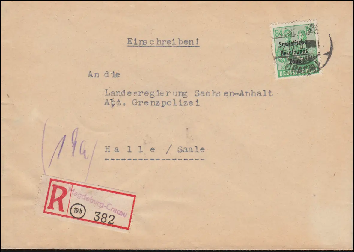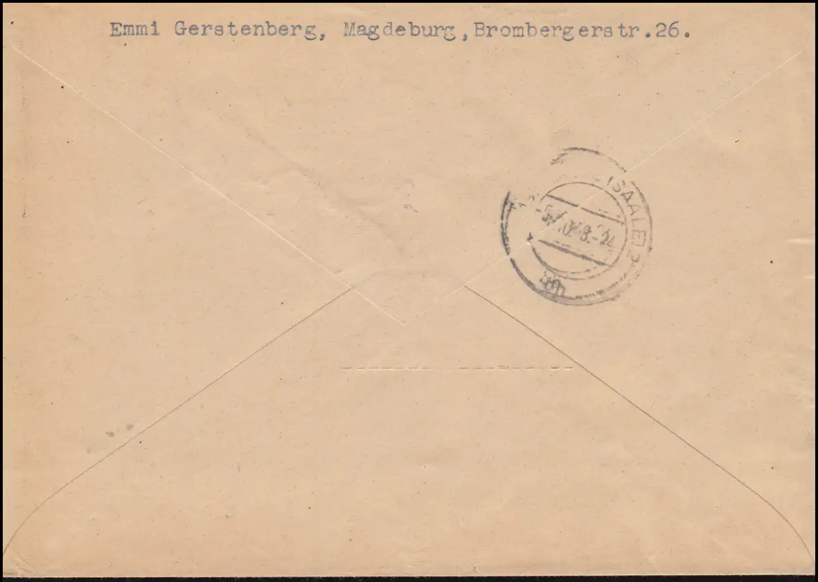 197 SBZ en tant qu'EF sur lettre R Not-R-Zettel Magdeburg-Cracau 2.10.1948