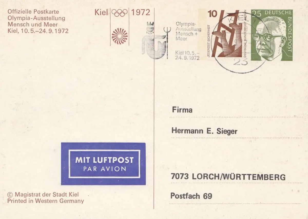 1972 Olympiades de Munich: homme et mer - entier Kiel