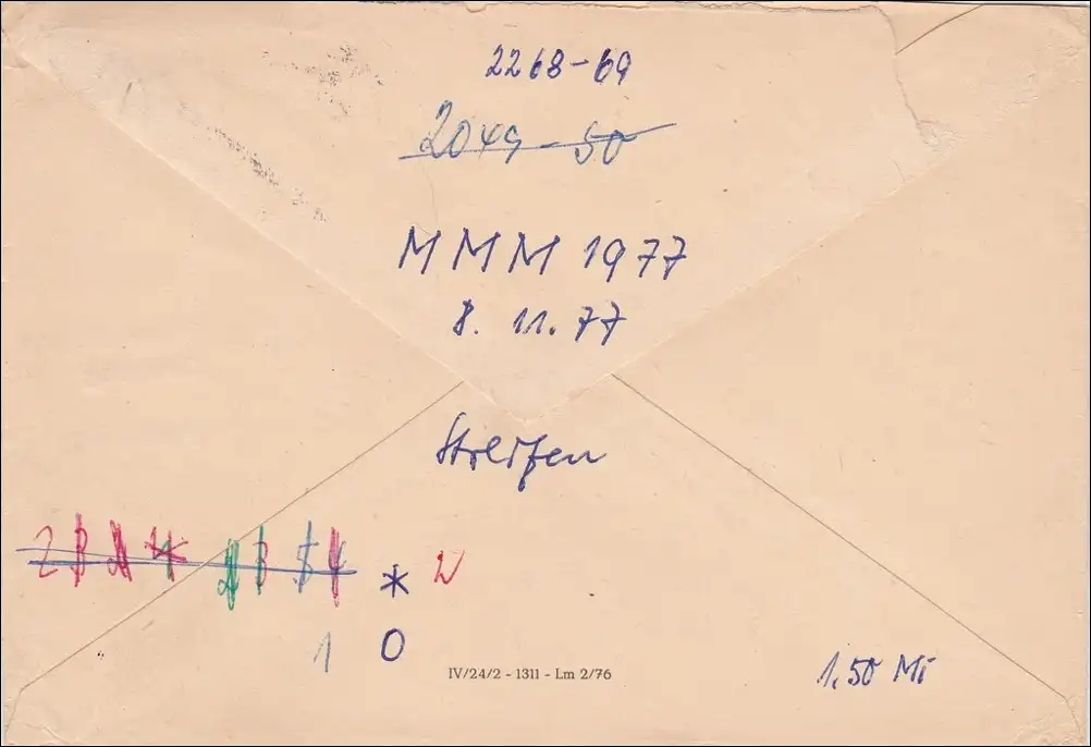 1977:Affaire postale Einseimmelt Berlin vers Leipzig-Fehl