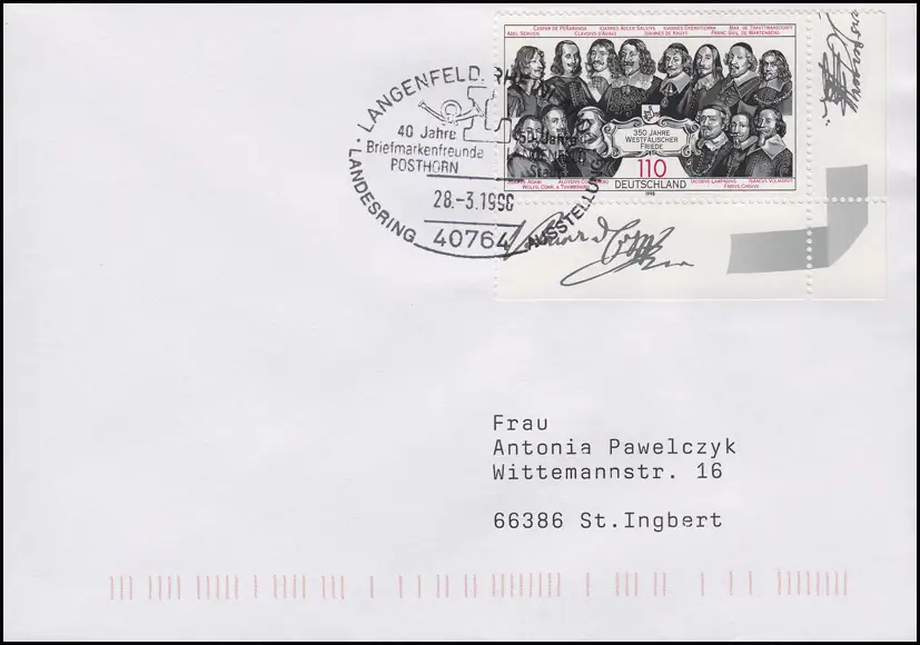 1979 EF Paix de Faux-Occidentaux, lettre SSt Langenfeld Enquête sur la ville 23.3.1998
