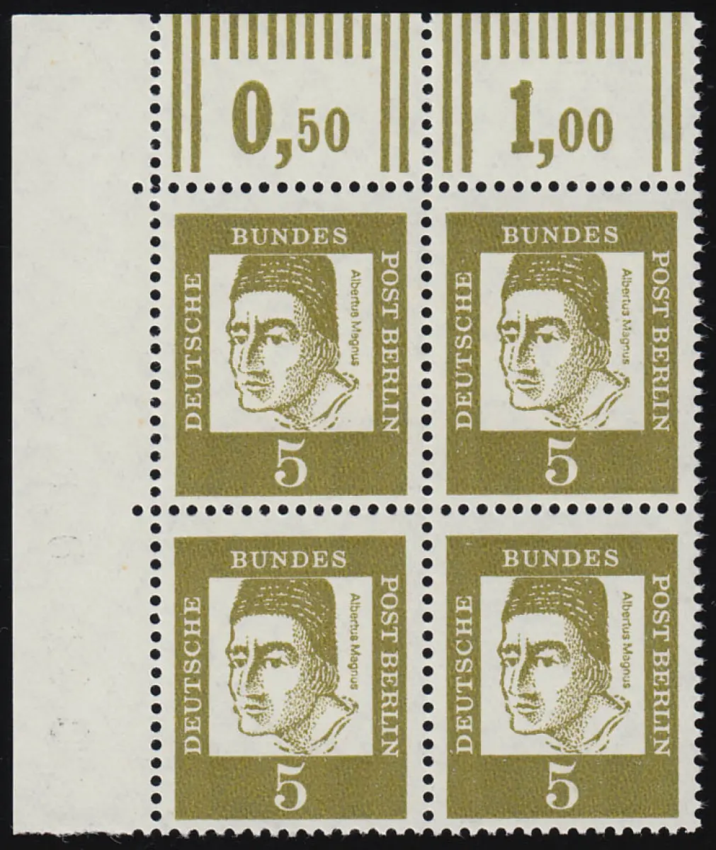 199 Bed. Deutsche 5 Pf Eck-Vbl. ol ** postfrisch