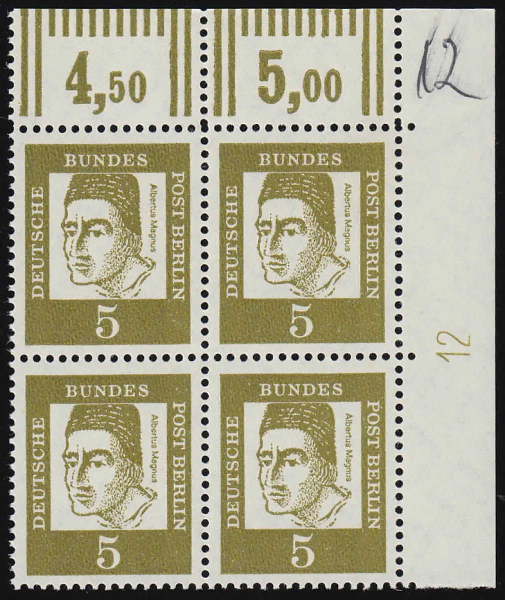 199 DZ Bed. Deutsche 5 Pf Druckerzeichen 12 Eck-Vbl. beschriftet, postfrisch **
