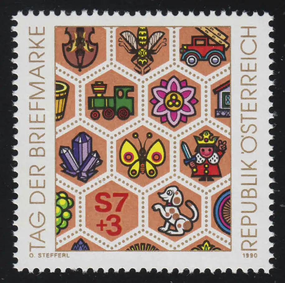 1990 Date du timbre, représentation symb. Motifs, 7 S + 3 S, **