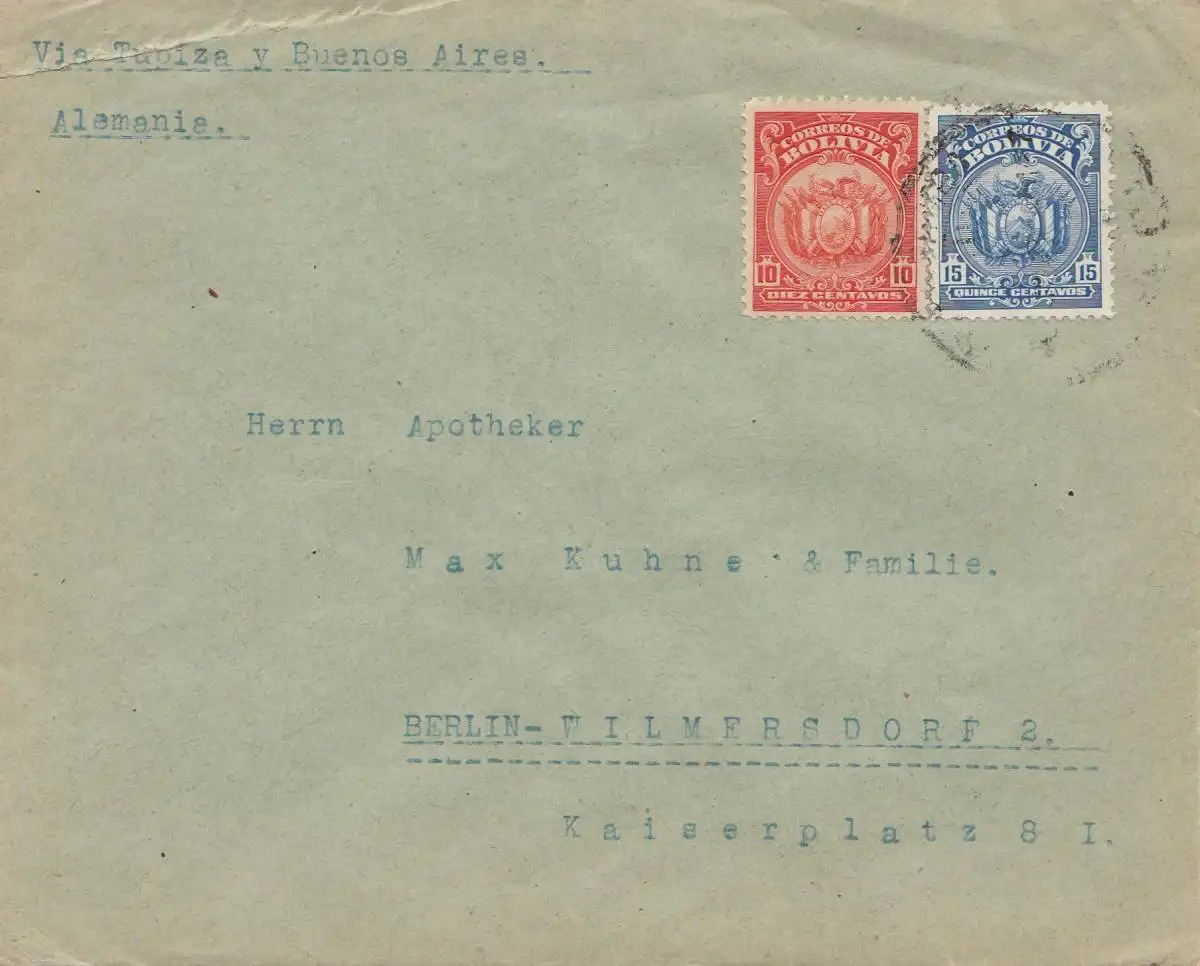 19xx cover Cochabamba via Buenos Aires to Berlin/Germany