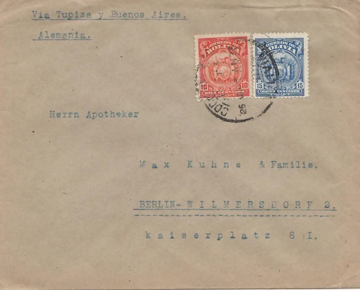 19xx cover Cochabamba via Buenos Aires to Germany