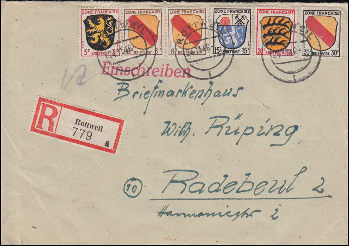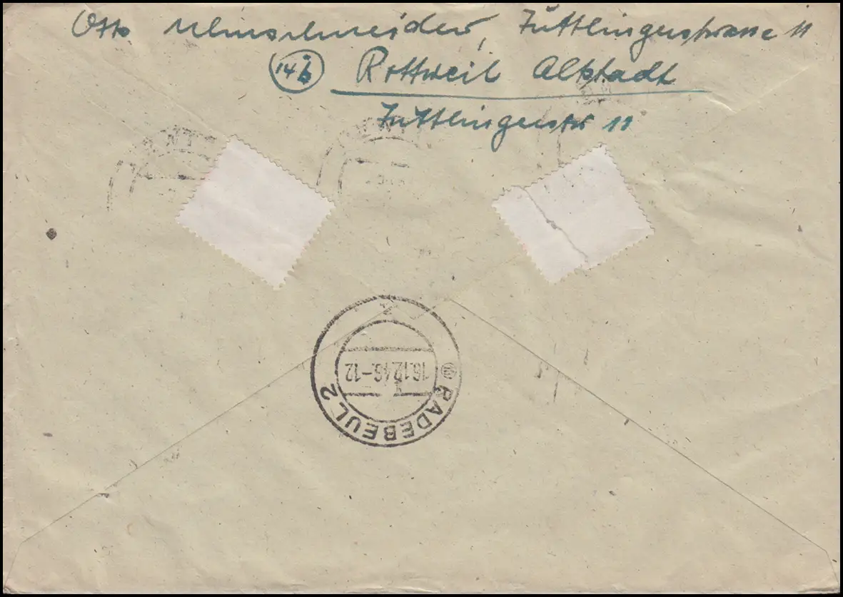 2+4+7+8+10 Armoires libres MiF Lettre R ROTTWEIL 24.11.46 vers RADEBEUL 16.12.