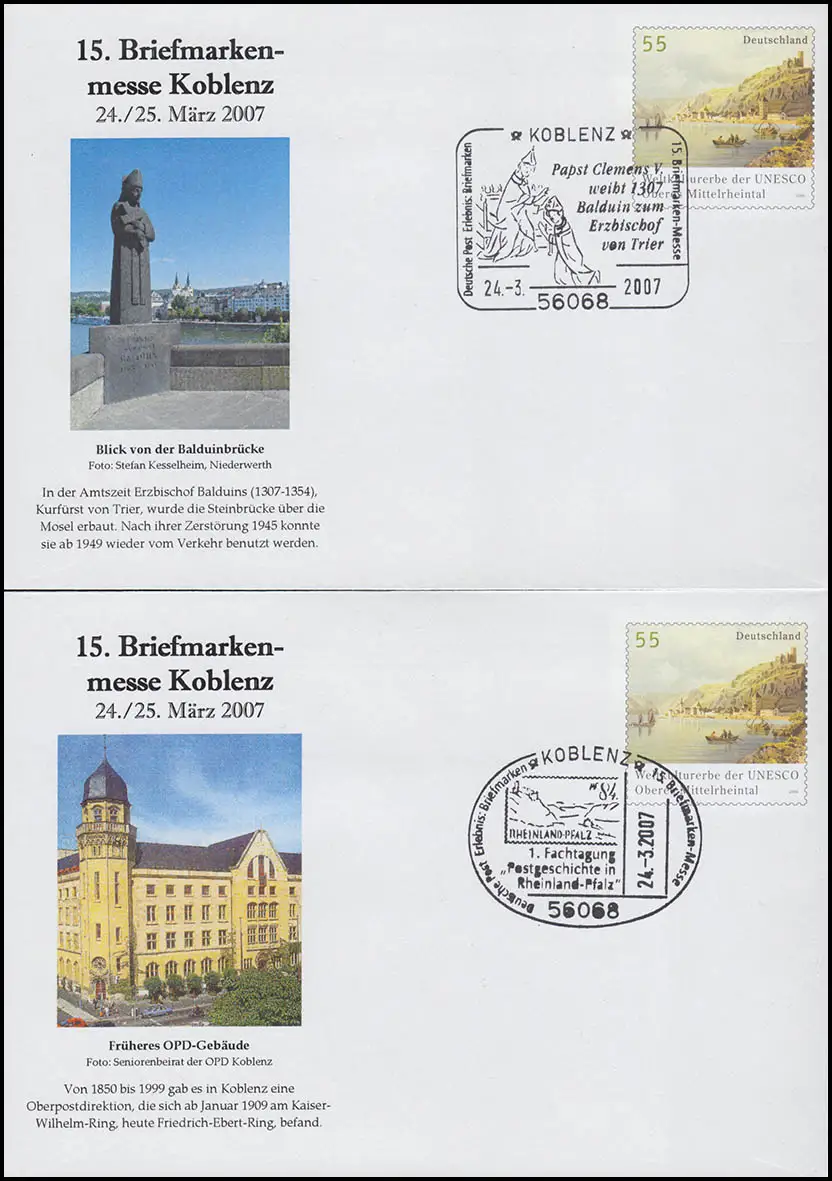 2 Plusbriefe USo 125/1 Messe Coblence: Balduinbrücke et OPD bâtiment les deux SSt