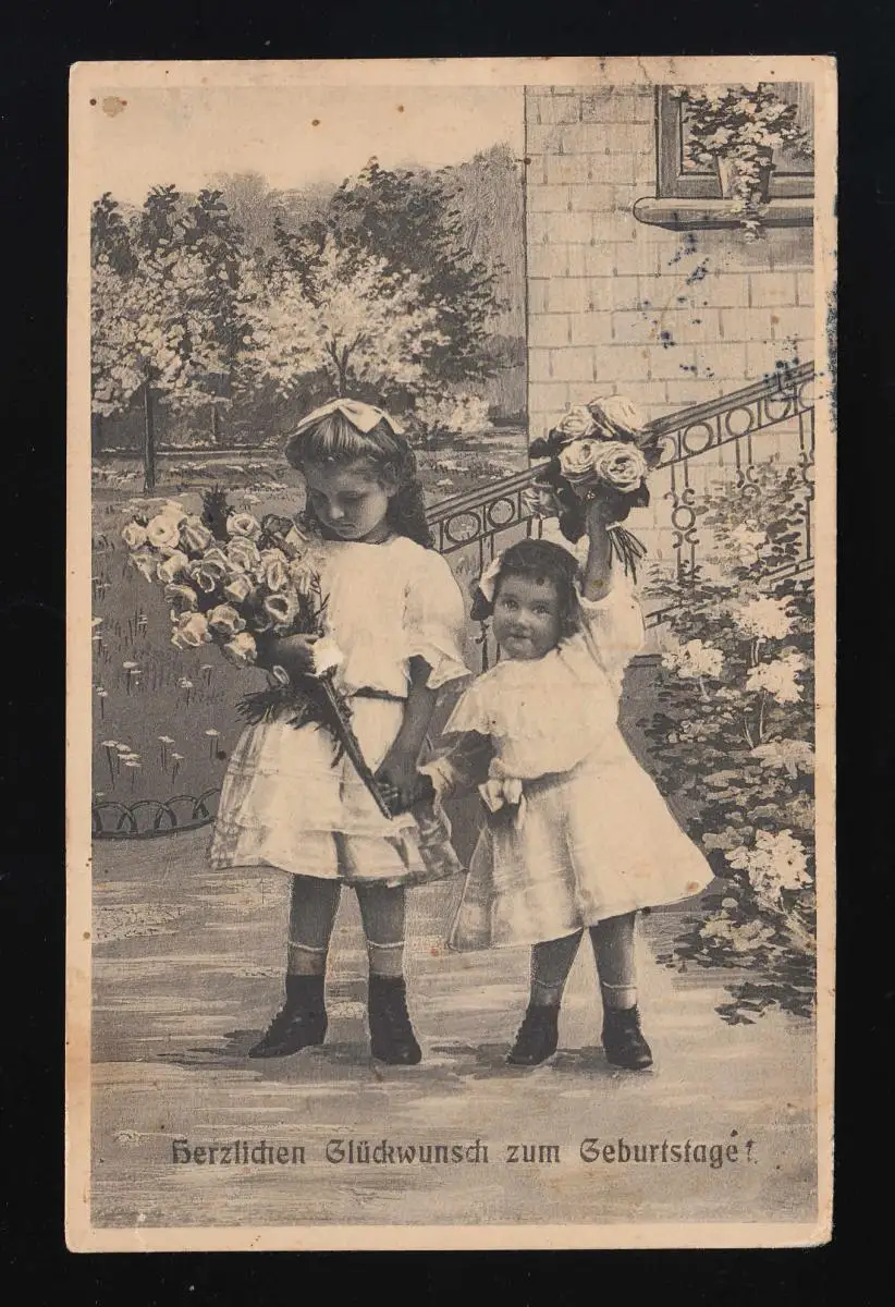 2 filles en robes blanches avec bouquets de roses, anniversaire, Hanovre 2.1.1909