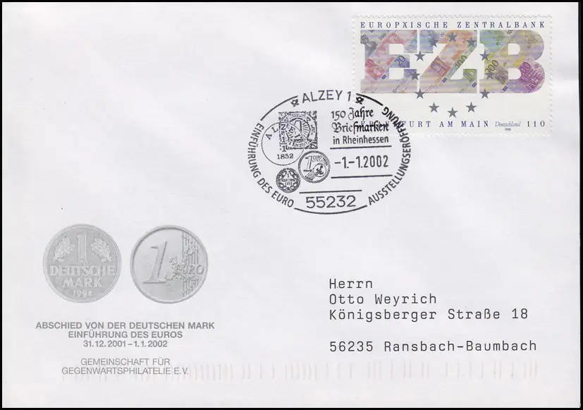 2000 BCE Banque centrale européenne, Bf SSt Alzey Introduction de l' euro 1.1.2002