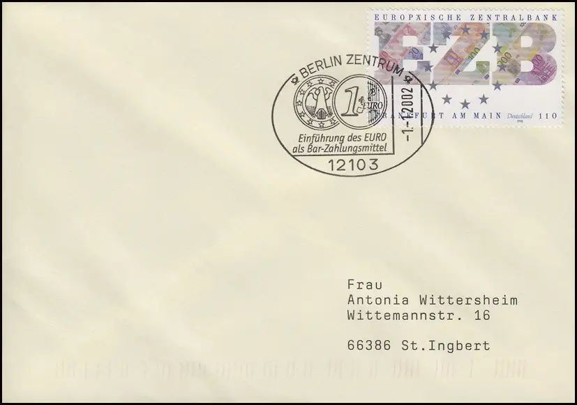 2000 BCE Banque centrale européenne, Bf SSt Berlin Introduction de l' euro 1.1.2002