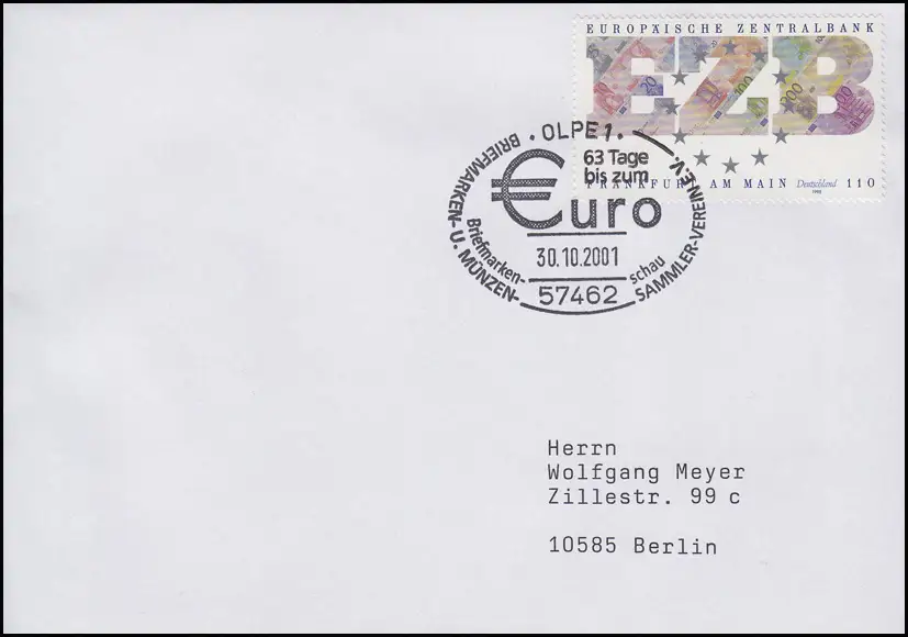 2000 BCE, EF Lettre SSt Olpe Timbres-Review & 63 jours jusqu'à l'euro 30.10.2001