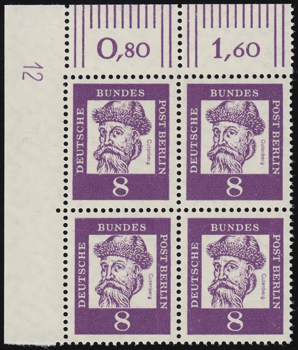201 DZ Bed. Deutsche 8 Pf Druckerzeichen 12 oben, Eck-Vbl. postfrisch **