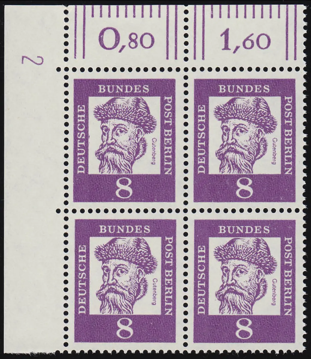 201 DZ Bed. Deutsche 8 Pf Druckerzeichen 2 oben, Eck-Vbl. postfrisch **