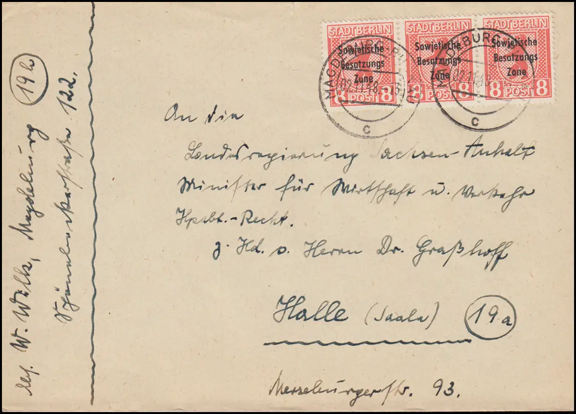202A SBZ-Imprimet Triple MeF Telephone MAGDEBURG-BUCKAU 2.11.1948