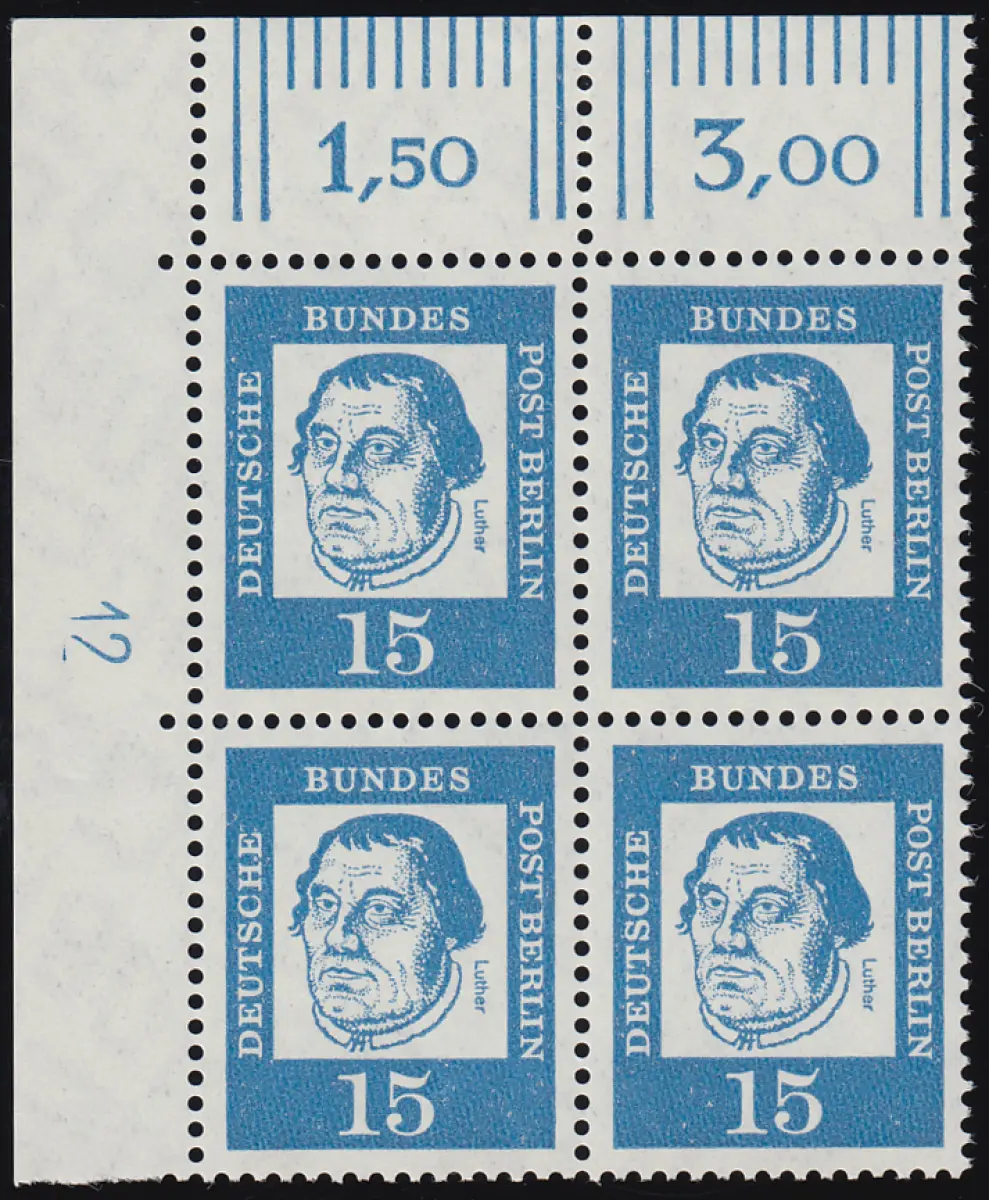 203 DZ Bed. Deutsche 15 Pf Druckerzeichen 12, Eck-Vbl. postfrisch **