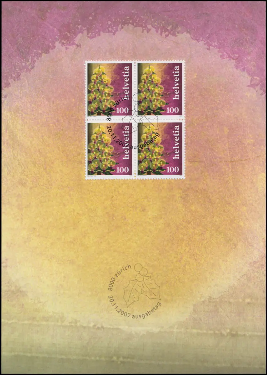2037 Consignes de Noël 2007 Quadruple, carte de vœux PTT à la fin de l'année