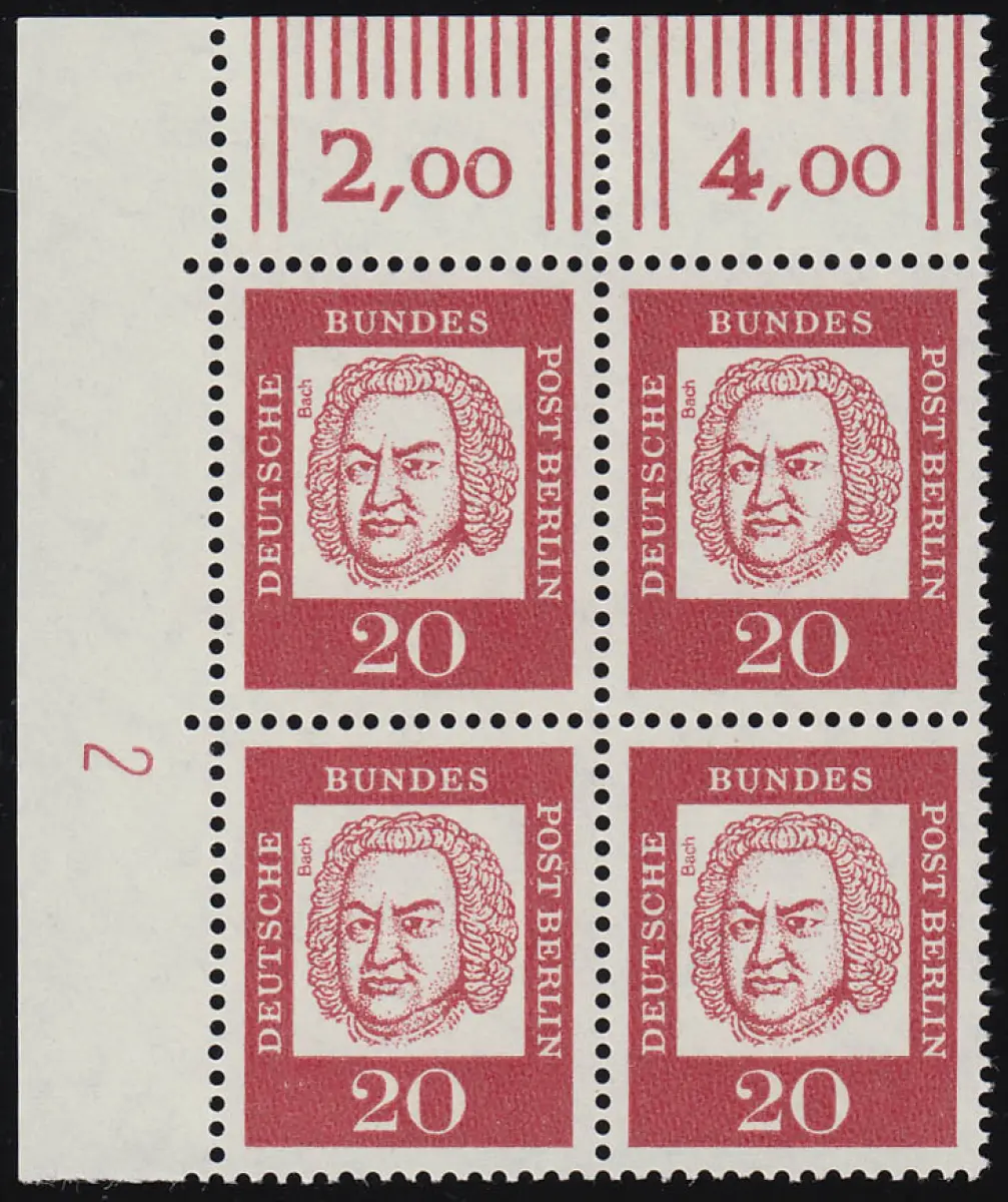 204 DZ Bed. Deutsche 20 Pf Druckerzeichen 2, Eck-Vbl postfrisch **