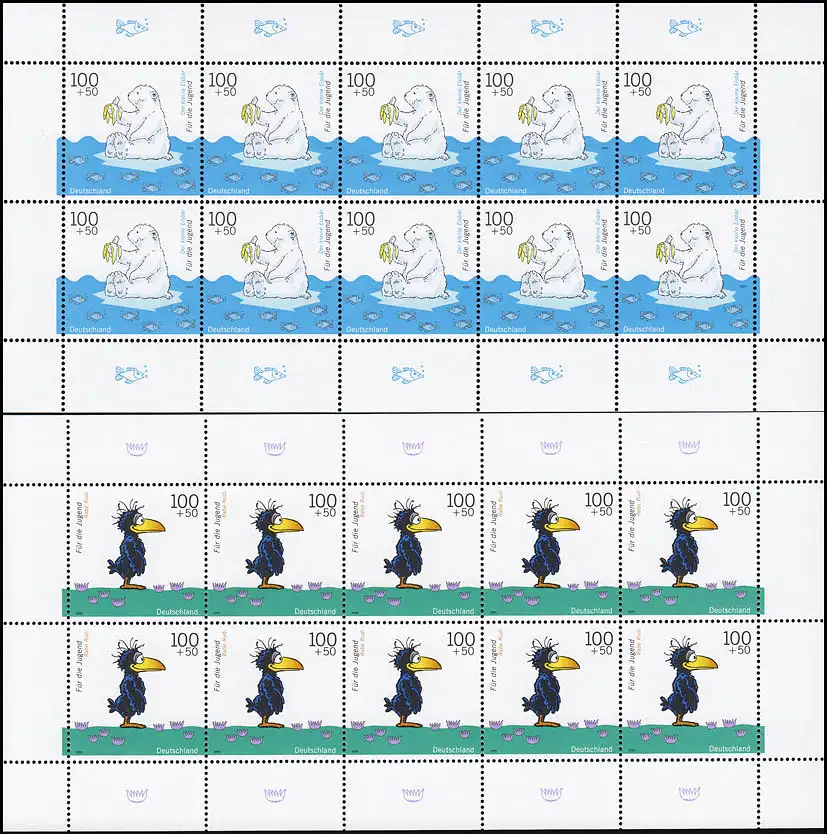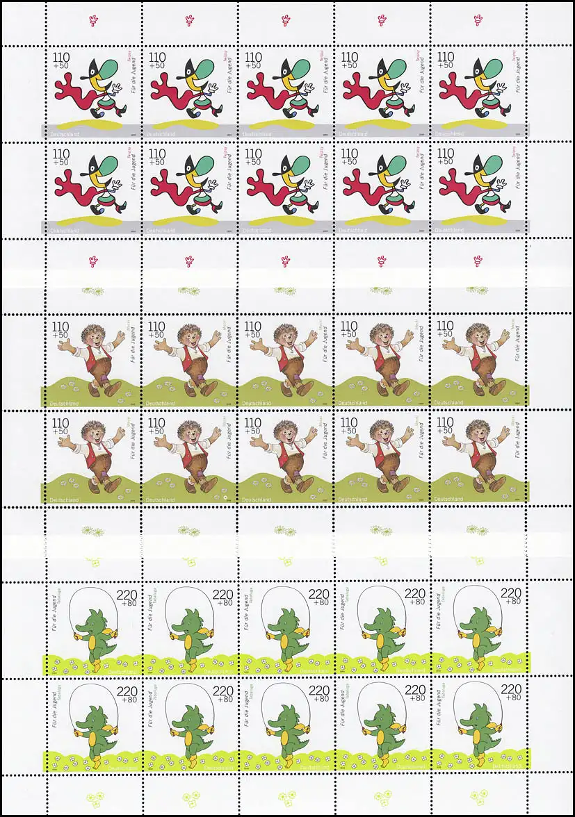 Tabaluga, Mecki, Rudi Rabe, Lars Eisbear et Twipsy - chaque marque par 10 en feuille, frais de port ** N° de catalogue: 2055-2059 Examen: original Référence produit: 50100205500100