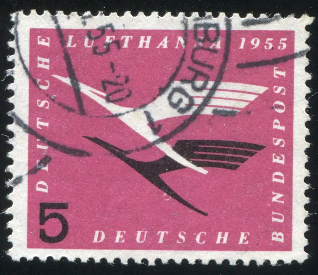 205I Lufthansa 5 Pf avec PLF I: feuille de sortie cassée de 5, O BPP-testé