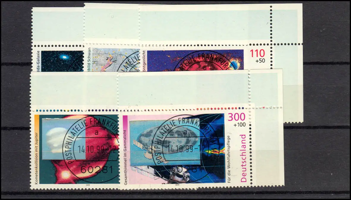 Tampon plein comme premier jour du bureau de livraison Francfort / Main 14.10.1999, deux marques avec hologramme Numéro de catalogue: 2077-2081 Test: original Numéro d'article: 00000000003175>p>Note: Cet article n'est disponible qu'une seule fois. Vous recevrez exactement l'élément représenté.