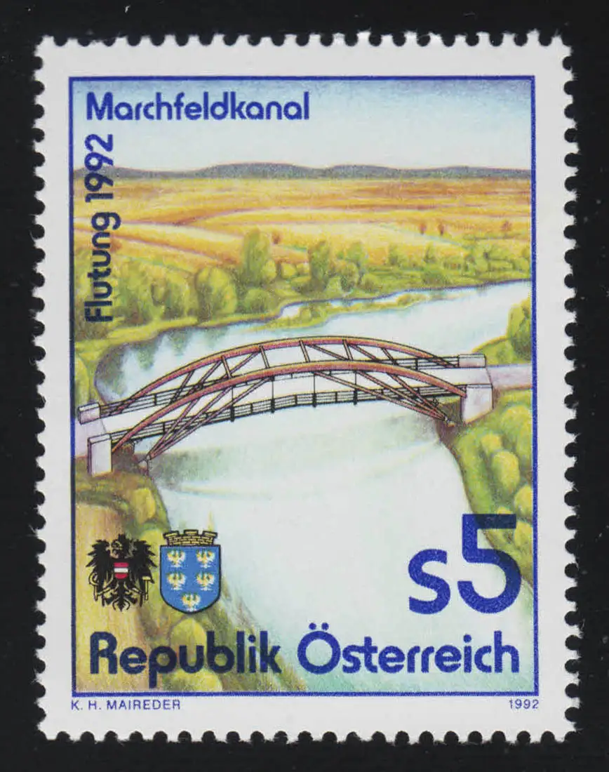 2078 Déluge canal de Marchfeld, partie du canal avec pont, 5 S, frais de port **