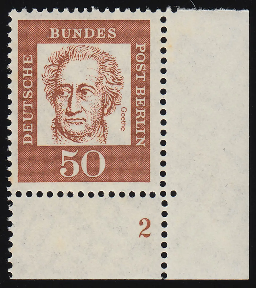 208 Bed. Deutsche 50 Pf Ecke ur Formnummer FN 2, ungefaltet postfrisch **