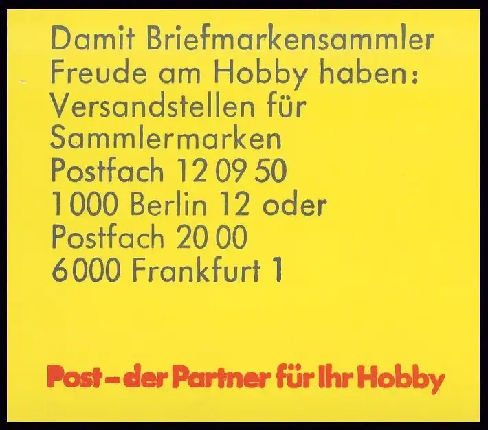 Une offre dans Timbres RFA Carnets de timbres - 4.751 autres offres dans cette catégorie