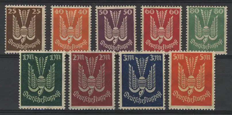 210-218 timbres de vol pigeon 1922, ensemble de 9 valeurs par la poste **