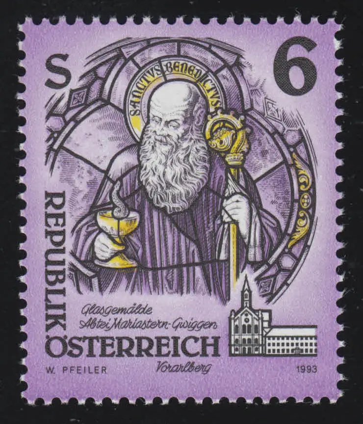 2108 Marque libre: Oeuvres d'art en stylos et monastères: Benoît v. Nursia, 6 p. **