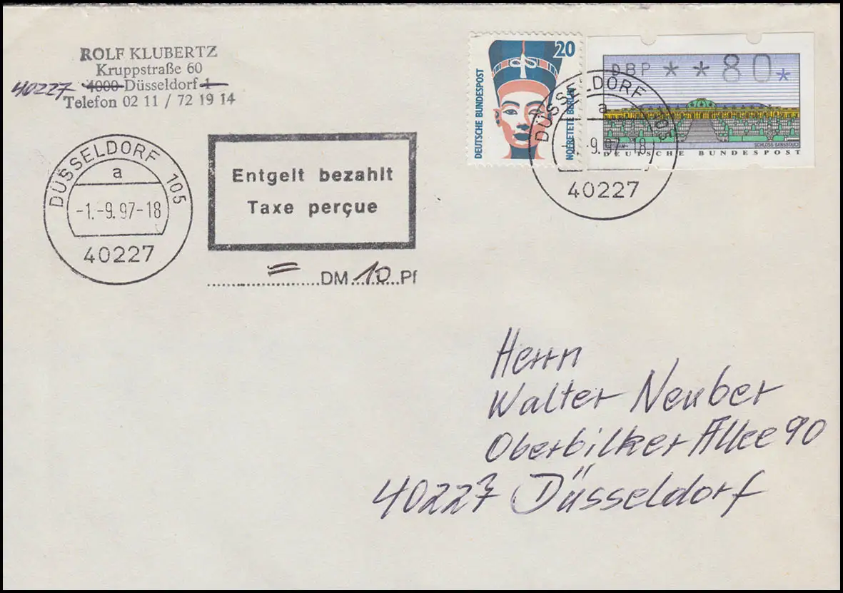 2.1.1. ATM avec SWK 20 et avec salaire-payé-temple lettre DÜSSELDORF 1.9.1997