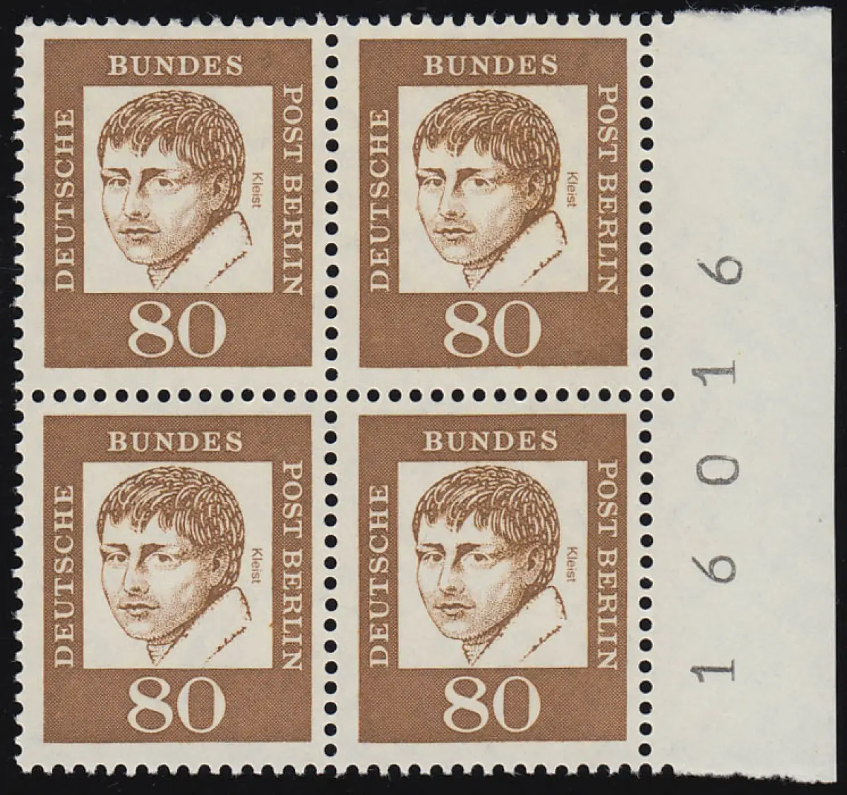 211 Bed. Deutsche 80 Pf Randziffern Viererblock, postfrisch **