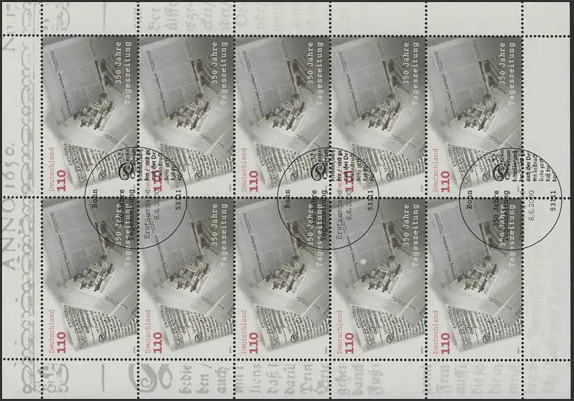 2123 Tagenmarkt - 10er-Bogen ESSt Numéro de catalogue: 2124 Examen: original Référence produit: 50100212300300