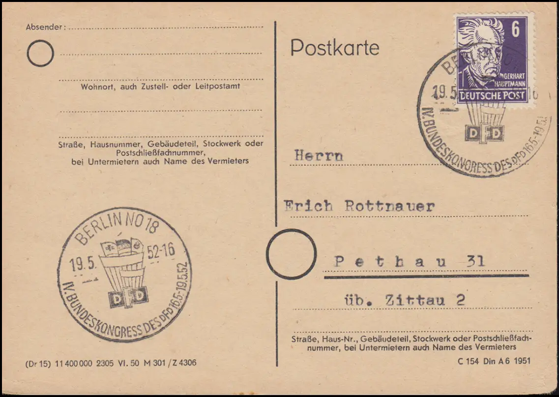 213 Capitaine en tant qu'EF sur l'affaire de presse SSt BERLIN Congrès fédéral du DFD 19.5.1952